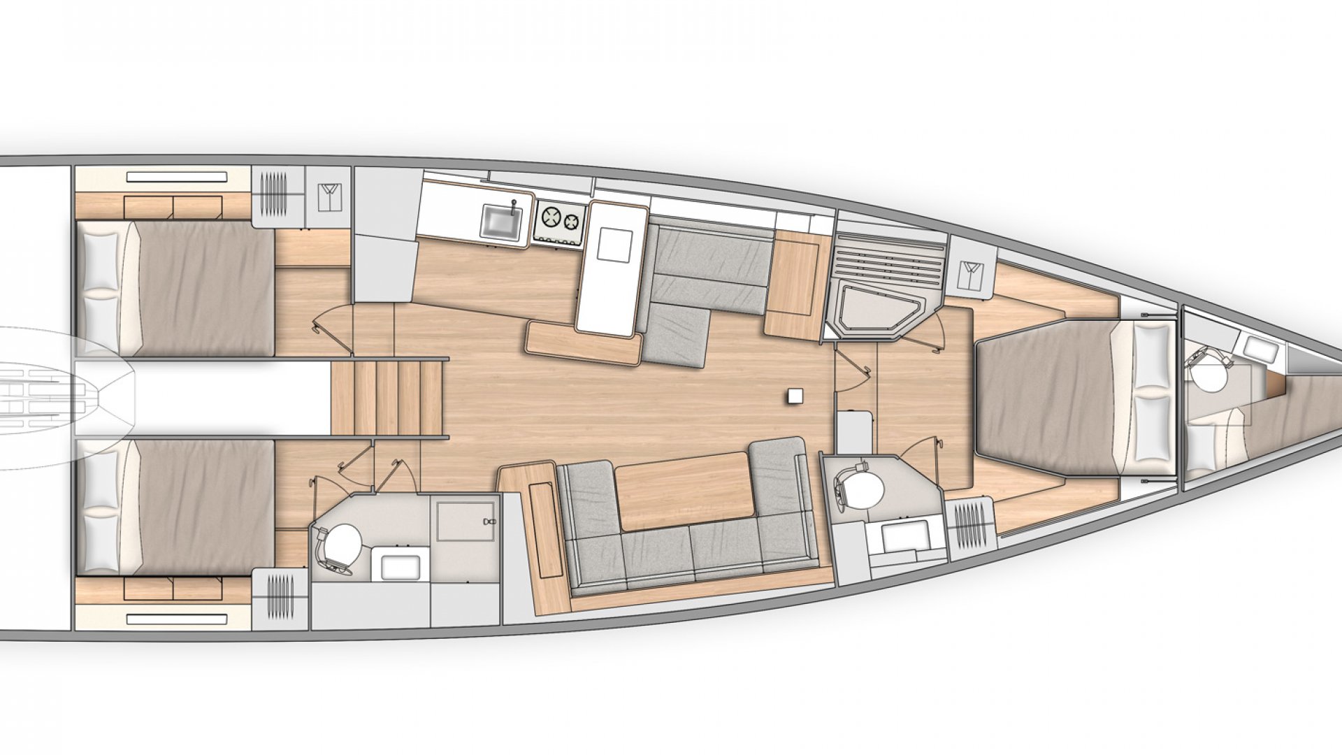 Die White Bird bringt bis zu 6 Personen in 3 Doppelkabinen. 1 zusätzliche Kabine für eine Person steht für den Skipper zur Verfügung. Kissen und Decken sowie Bettwäsche und auch Handtücher werden während der Yachtmiete zur Verfügung gestellt. Das Segelboot White Bird hat 2 Toiletten mit Dusche, 1 extra Toilette in der Skipperkabine.