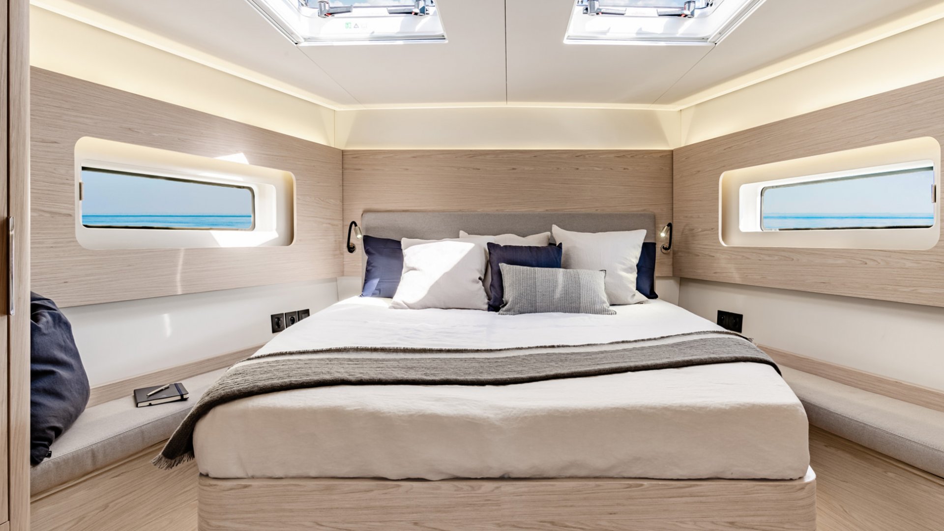 Die Beneteau ist mit einem Rollgroßsegel, Stromgenerator, Bimini und Außen-GPS-Plotter ausgestattet. Es bietet außerdem eine Klimaanlage, Soundsystem, Außen- und Innen-Lautsprecher und eine komplett ausgerüstete Küche inklusive Ofen, Herd, Spülbecken, Kühlschrank, Geschirrspüler und Küchenutensilien.
